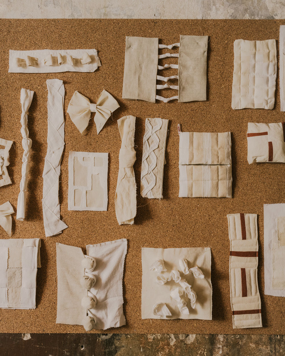 Sarah places textiles back at the center of creation, elevating a material too often devalued by intensive, outsourced industrial production. This industrialization has led to a decline in the quality and prestige of textiles, which are often perceived as less noble.