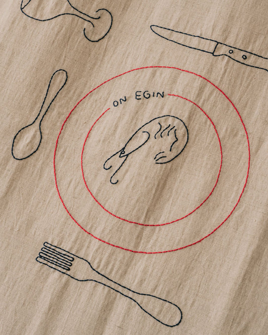 Sarah Espeute loves to tell table stories, staging her illustrations as trompe-l'œil meals. Engraved with a minimalist, hand-embroidered line, Sarah's tableware pieces such as tablecloths, table runners and placemats become sensitive pieces of art that evoke family memories and tell new stories. Each piece can be made to order, with the embroidered elements of your choice.