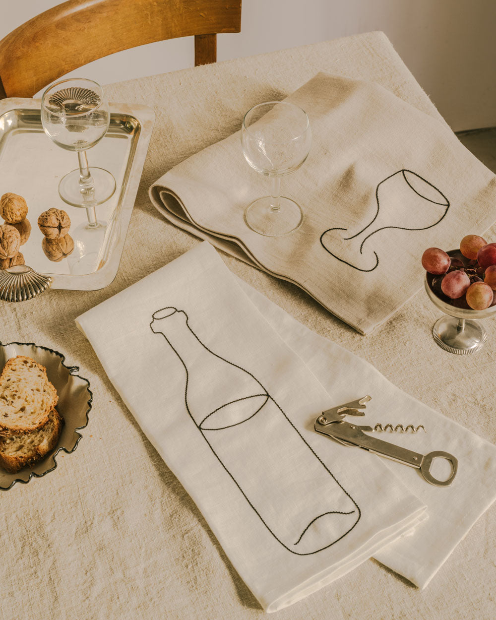 Coffret cadeau comprenant un Torchon de service à vin en lin blanc et un Torchon Verre dans la couleur de votre choix. Un duo simple et raffiné, pensé pour les amateurs de vin et les moments de dégustation.