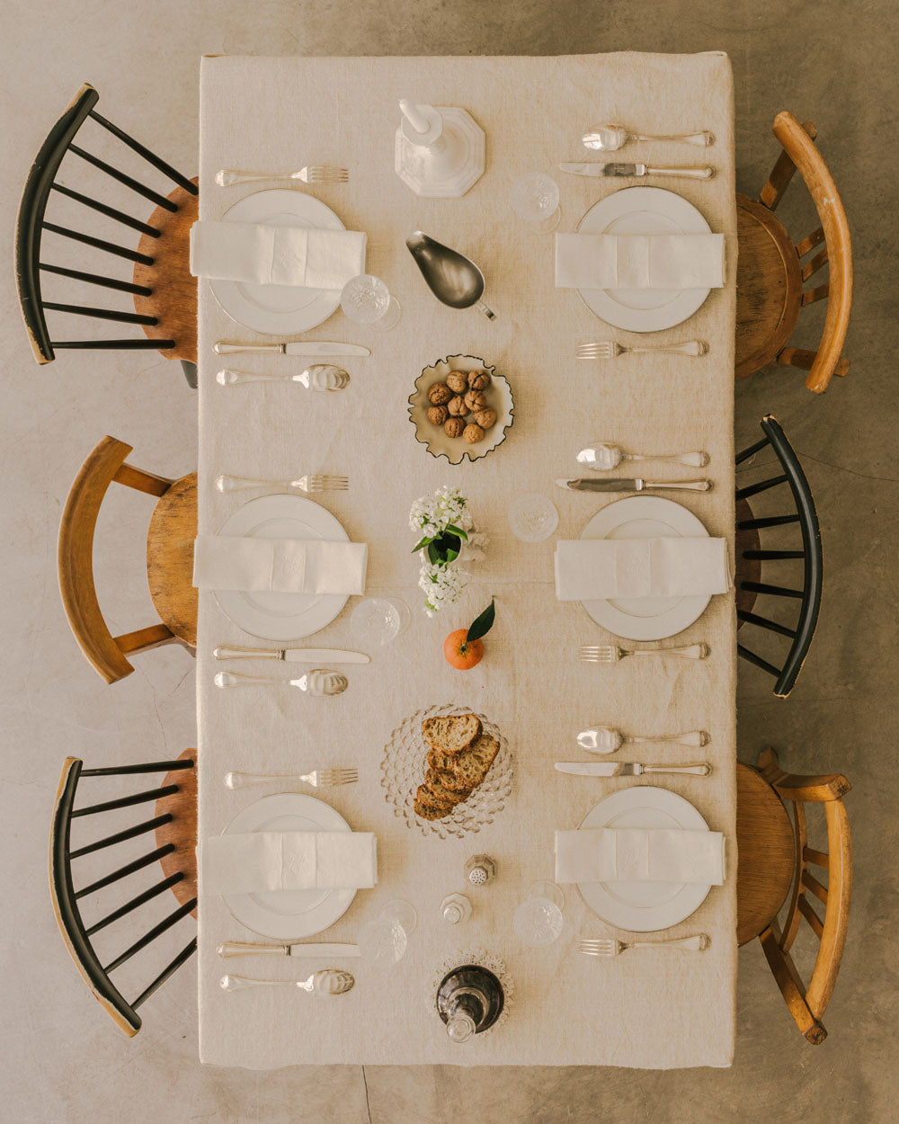Un ensemble de six serviettes trompe-l'œil, chaque serviette présente un trompe l'œil d'un rond de serviette avec une initiale personnalisable.