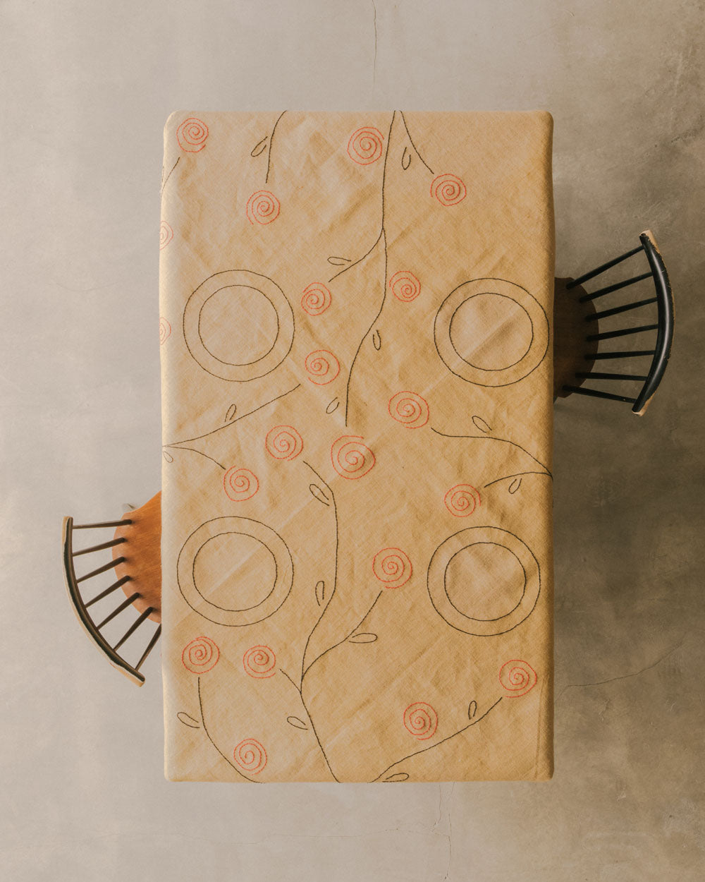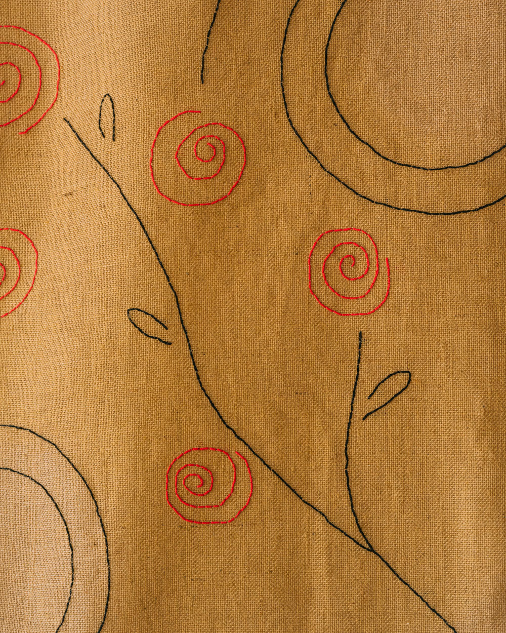 - Brodée avec du fil de coton noir et rouge