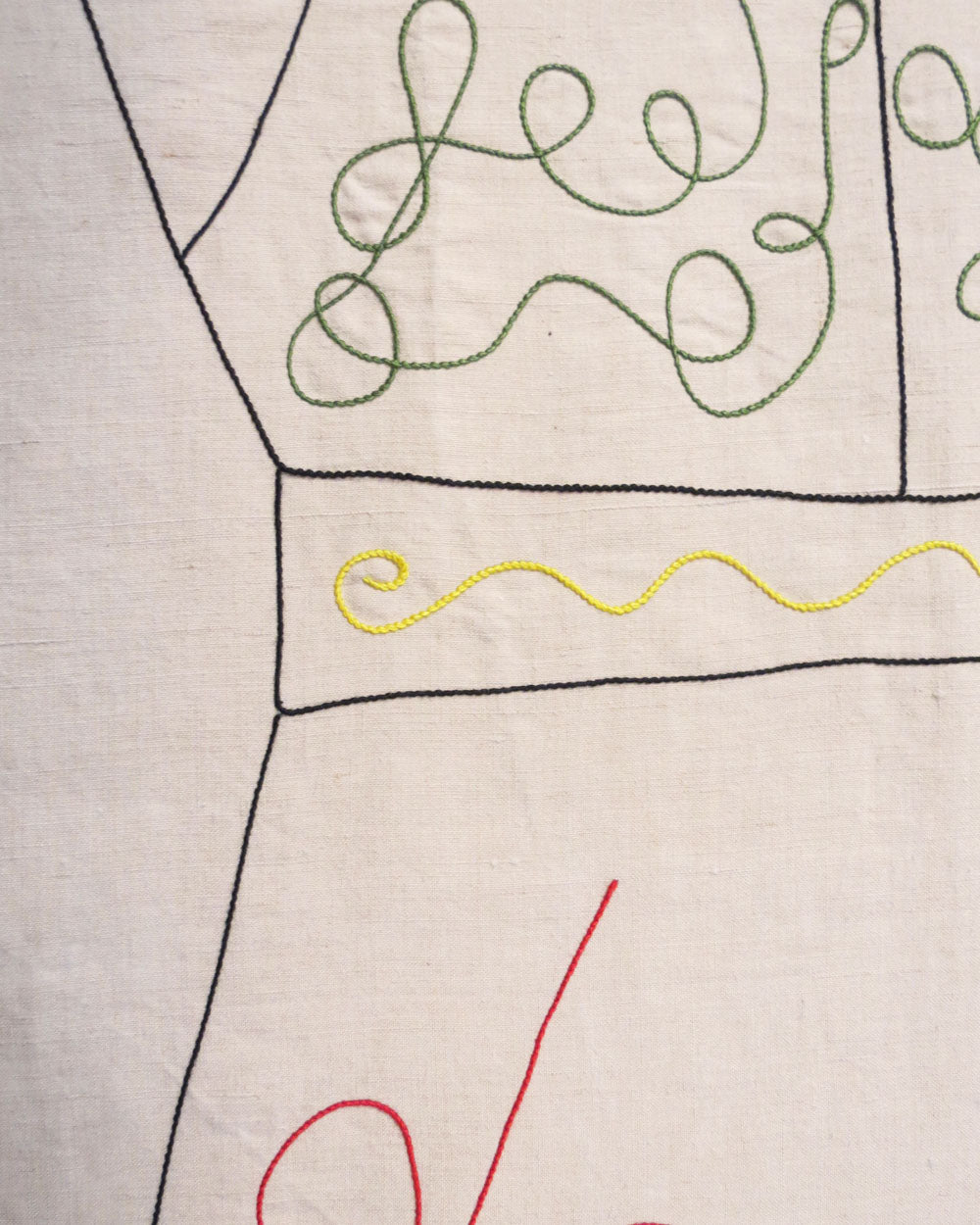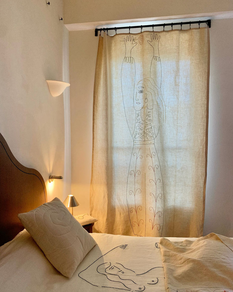 Rideaux brodés issus de l'exposition "Situations Romantiques" à Paris, Novembre 2023.