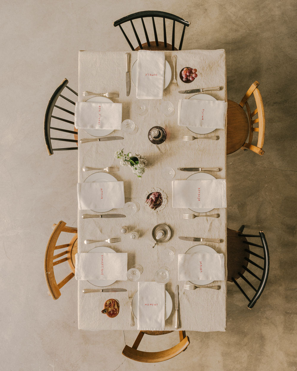 Sarah a passionnément choisi des mots ayant une signification personnelle. Ces serviettes sont un témoignage de l'élégance intemporelle et de l'artisanat français.
