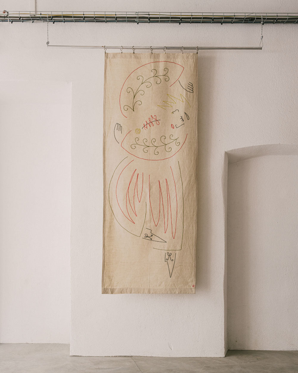 Cette pièce peut être utilisée accrochée comme une tapisserie murale ou en jeté de lit.