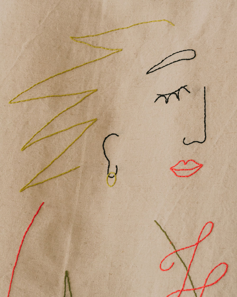 - Brodée à la main avec du fil de coton.