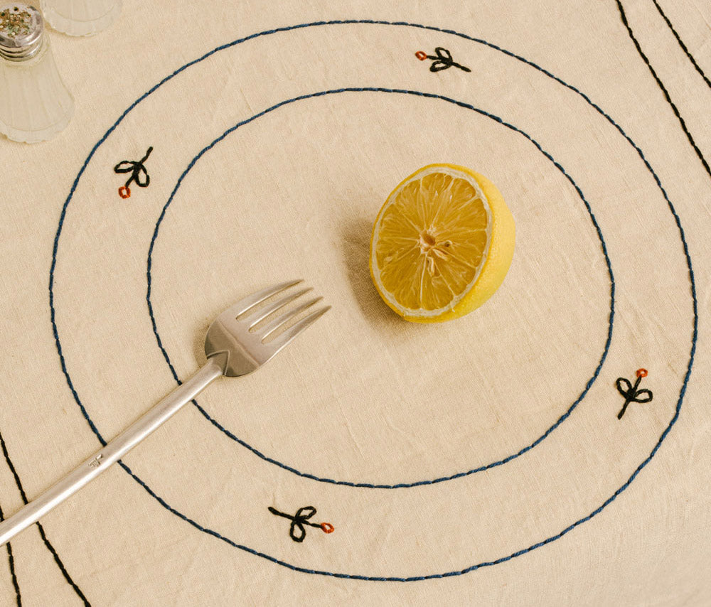 Here are some good homemade recipes to preserve the life of your naturally colored embroidered linen WITHOUT DYE. First and foremost, know that the sooner you treat a stain, the easier it will be to get rid of it! Never use hot water on a stain; you will only set it, and do not use bleach, as it would damage the fabric. Start by gently removing the excess without spreading it.