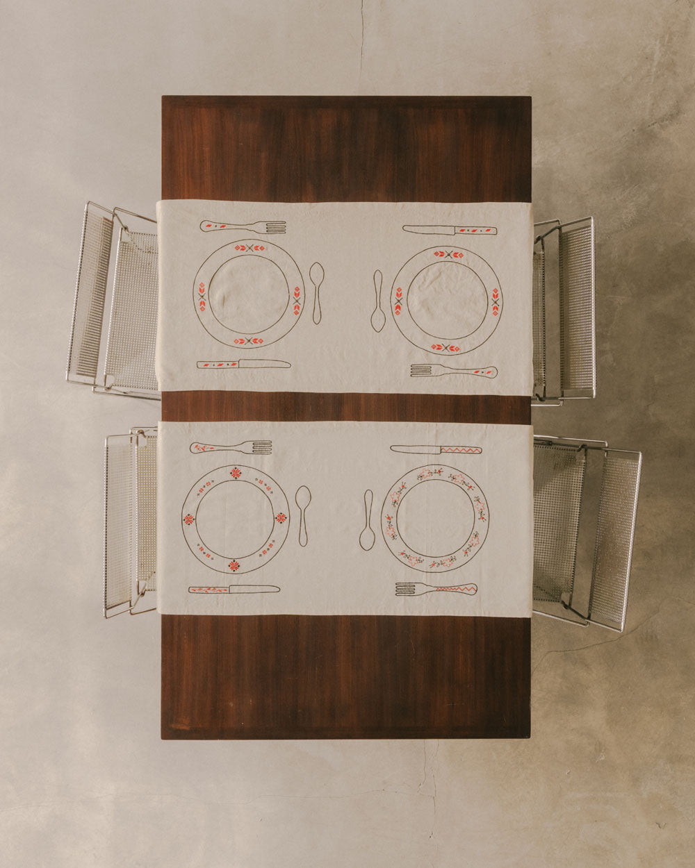 This one-of-a-kind placemats were created in collaboration with Corridor Citoyen, a French nonprofit coordinating humanitarian aid and evacuations from crisis zones, including Ukraine.