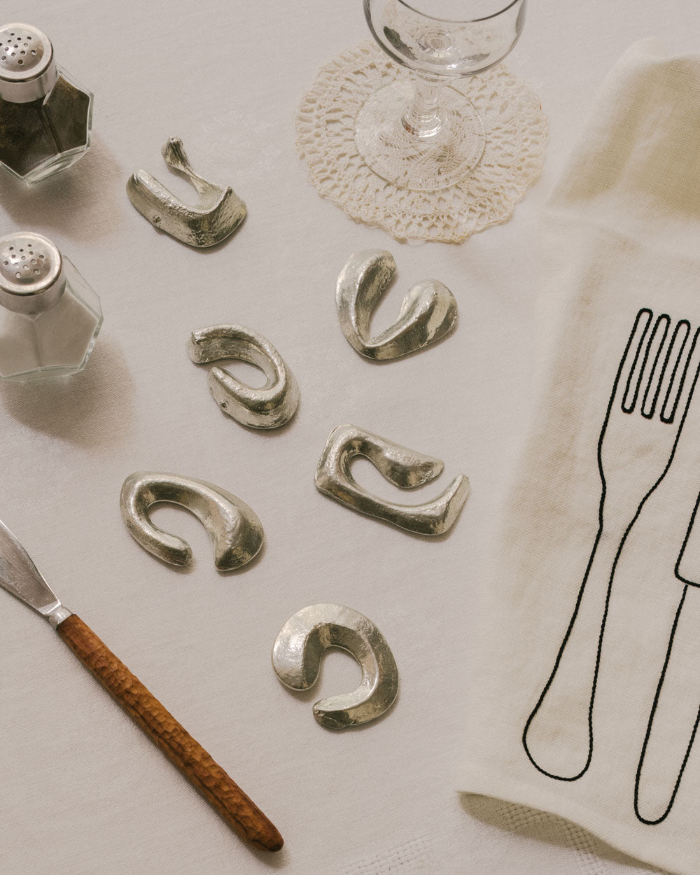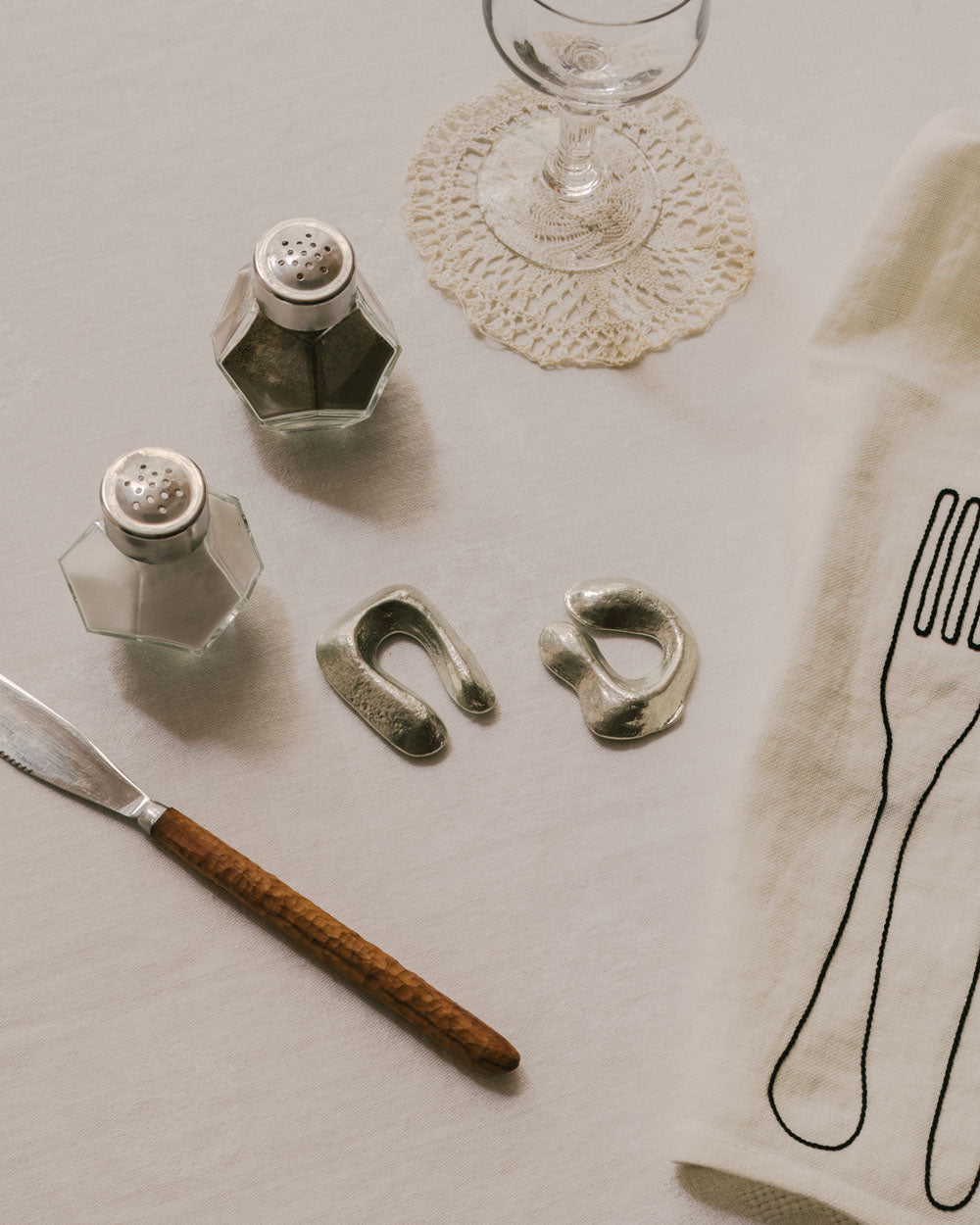 These knife-rests in pewter are unique pieces of art designed by Léa Bigot for the first edition of Porte-Couteaux Sensibles. They add a dash of charm while safeguarding your tablecloth from culinary chaos.