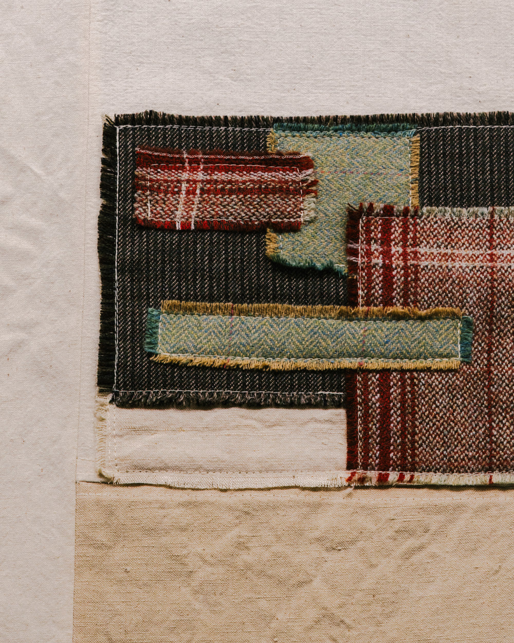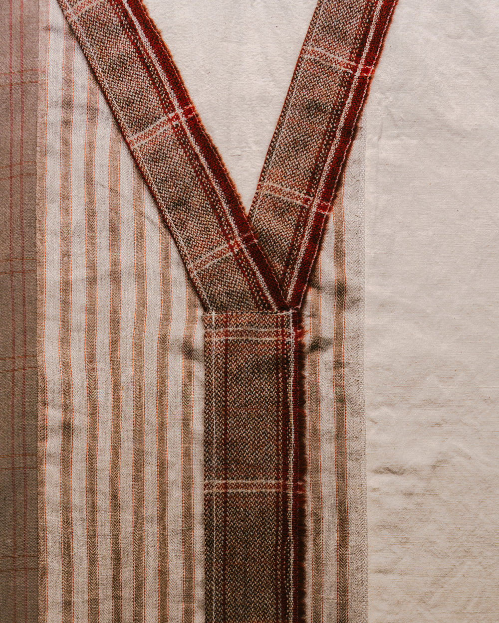 This Kimono Curtain was handcrafted using a patchwork of vintage wool and linen fabrics.