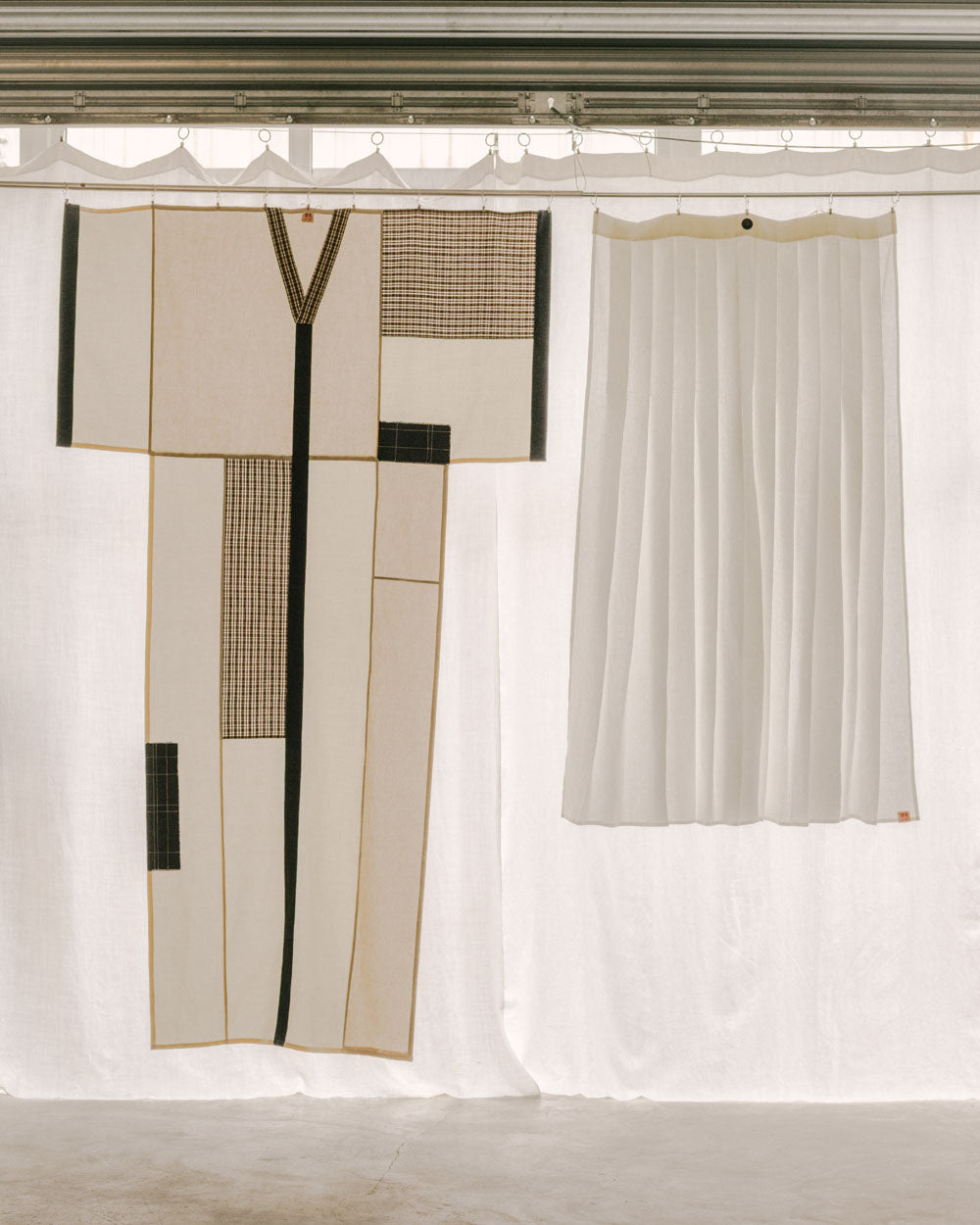 The Pleated Skirt Curtain is inspired by the straight-pleat skirt, echoing its rhythmic movement and structured regularity. The vertical folds create a play of lines that transform the curtain’s surface into a living volume, balancing architectural rigor with textile fluidity.