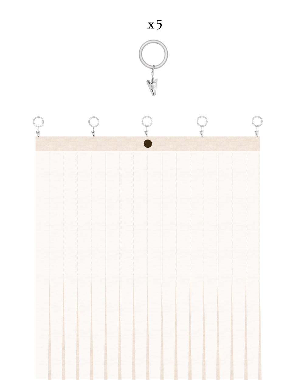 Use 5 ring clips for a perfect fall. You can let the curtains hover just above the floor for a 'hanging garment' effect or allow them to pool gracefully for a more fluid, flowing look.