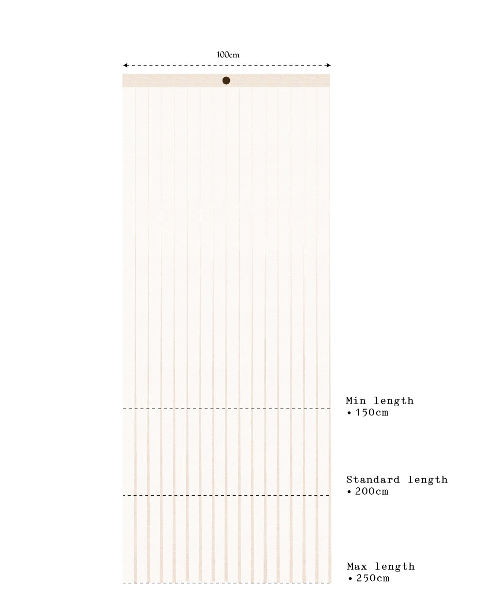 - Dimensions: Width of 100cm/39in. Length can be adjusted from 150 to 250cm / 59-98in.