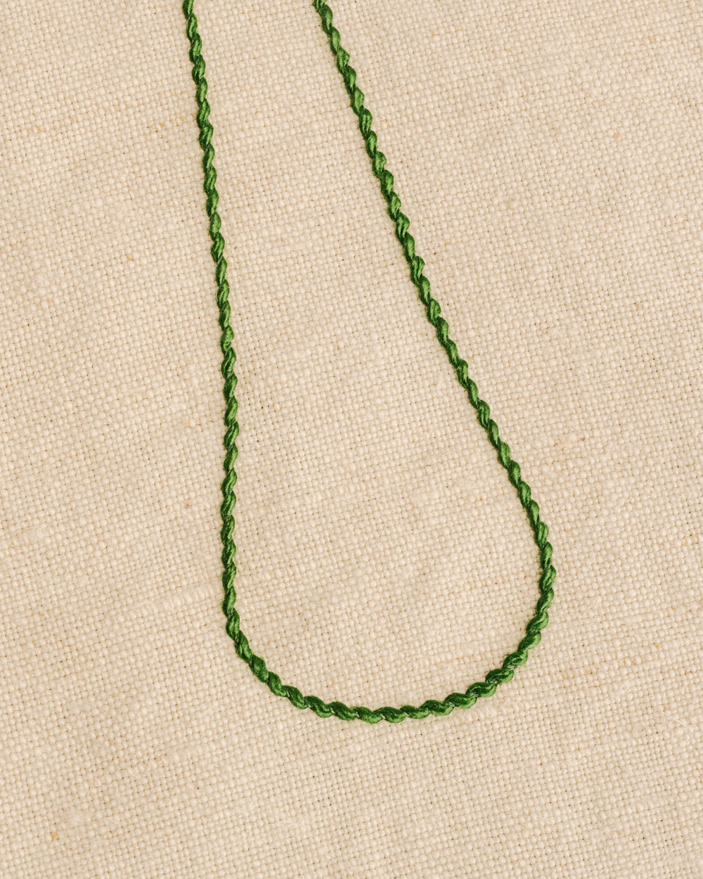 - Embroidered using a Cornely machine — a hand-guided chainstitch technique from the 19th century.